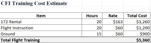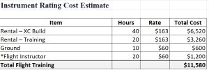 Note: Assumption is 20 hours of CFII use during training. FAR 61.65(d)1 states 15 hours minimum flight with CFII, this allows for 5 extra. Many students elect to use a CFII for most or all of their required simulated instrument hours. You may adjust this estimate according to you and your CFII’s recommendation.